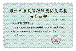 2017年度鄭州市市政基礎設施優良工程