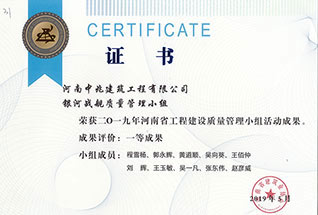 2019年度河南省市政公用工程建設質量管理小組優秀獎